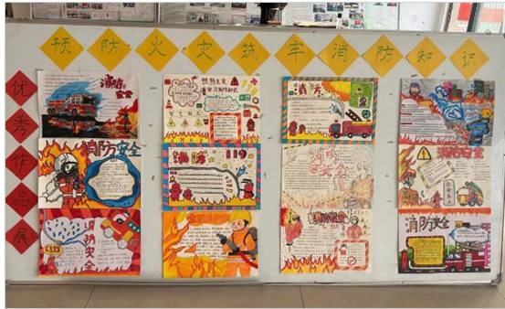 14、开展主题手抄报活动,同学们利用课余时间,搜集挑选消防安全知识素材并设计手抄报,内容涵盖消防安全知识、防火警示标志、消防宣传标语等,图文并茂,主题突出。